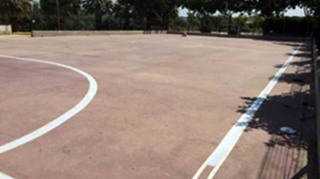 Además, se esta procediendo al pintado de algunas dependencias del polideportivo municipal del Valle, entre las que se encuentran las pistas exteriores o campos donde se juega entre otros deportes al baloncesto, balonmano, tenis, futbol 7, etc… que están siendo limpiadas y pintadas las líneas que demarcan el terreno de juego.