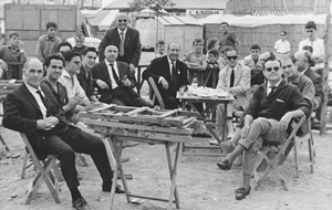En la instantánea donde se aprecia, al fondo, la construcción de los grupos de viviendas de la calle Nueva, se encuentran entre otros los miembros de la junta directiva: Manuel Martín González, presidente; el procurador de los tribunales, Víctor Losada Galván; los funcionarios del juzgado, Antonio Caro González y Francisco Rodríguez González, así como Antonio Losada Gómez, José E. Rodríguez Losada, entre otros.