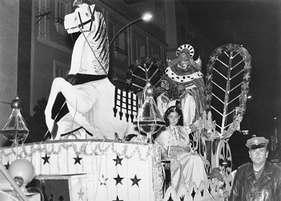 En la festividad de los Reyes Magos del año 1961, el Ayuntamiento de la Ciudad organizó la cabalgata que suscitó un extraordinario interés por parte de los ciudadanos y especialmente por los más pequeños. El cortejo salió del Cuartel de la Doma, donde se llevó a cabo la preparación de las carrozas. Abrió la comitiva la Banda de cornetas y tambores del Colegio salesiano de Nuestra Señora del Carmen. Los Reyes fueron representados por José Ostos Castilla, Gregorio Martínez Márquez y Manuel Martín González, que lucieron lujosas carrozas. Tal fue la expectación del desfile que el acudió multitud de gente.