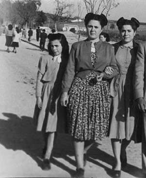 Los jóvenes y las familias al completo se reunían en la Plaza Mayor, y desde allí, se iniciaba un itinerario que concluía a la altura del parque Infantil. Llegado a este punto, se tomaba nuevamente la dirección hacia la Plaza; y así, sin solución de continuidad, se daban vueltas y vueltas en animadas tertulias. Era tal el gentío, que se ocupaban no sólo aceras sino también la calzada en todo su trayecto. Eso sí, había una norma no escrita por la que los ciudadanos desfilaban siempre por la derecha y se paraban y charlaban, de vez en cuando, con los del lado opuesto. Los jóvenes tenían la oportunidad de dejarse ver con sus mejores galas y de encontrarse con otros grupos para establecer relaciones amistosas que a veces terminaban en noviazgo, y sobre todo, de divertirse y organizarse para ir al cine o los guateques.